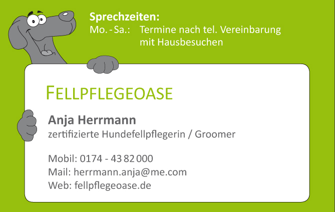 Mein Gewerbe stellt Ihnen eine große Bandbreite zur Verfügung aus der Sie ganz nach Ihrem Geschmack wählen können. Dabei unterstütze ich Sie gern mit einer umfassenden und fachlich kompetenten Beratung für Ihr Haustier in allen Fellpflegeangelegenheiten.
